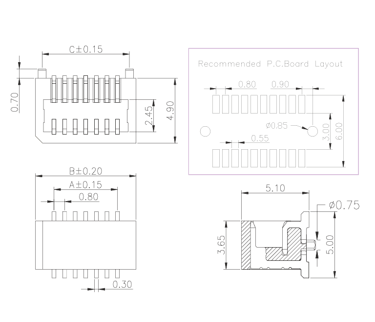 Pitch :0.80 mm / 0.03" Gender :FemaleMount type :S.M.T. R/ALocating peg :With
