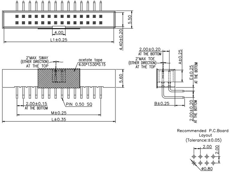絕緣材料:PBT,尼龍,LCP,UL 94V-0