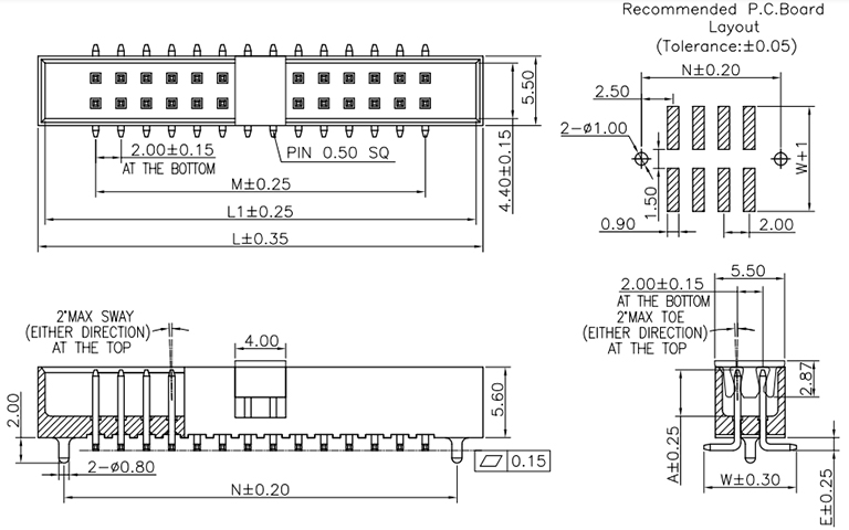 絕緣材料:PBT,尼龍,LCP,UL 94V-0
