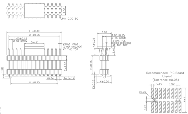 P/H1.0 mm 貼片排針 CC101