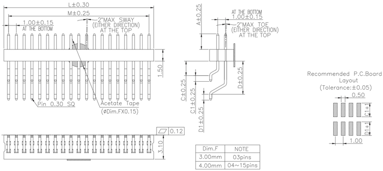 P/H1.0 mm 單排排針 CA101