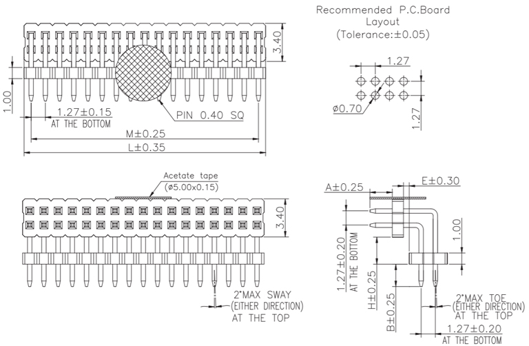 P/H1.27mm 雙排排針 EB232