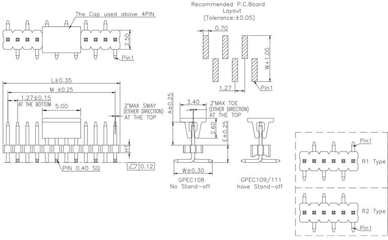 P/H1.27mm 單排排針 EC108