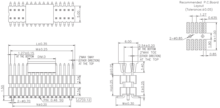 P/H1.27mm 雙排排針 EC260