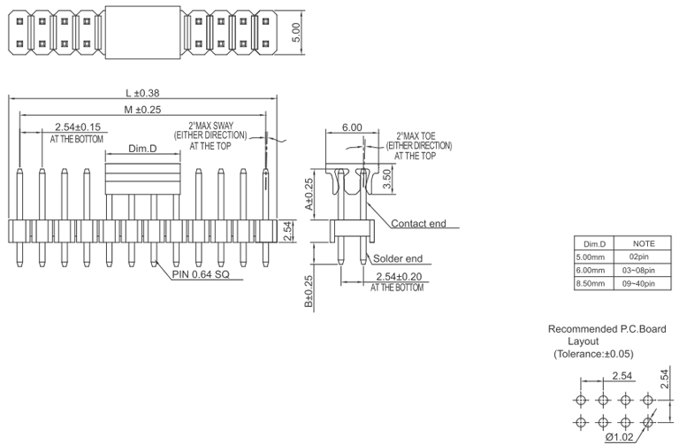 P/H1.0 mm 單排排針 CA101