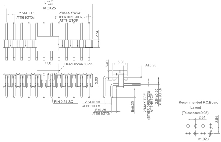 P/H2.54mm 雙排排針 HB201