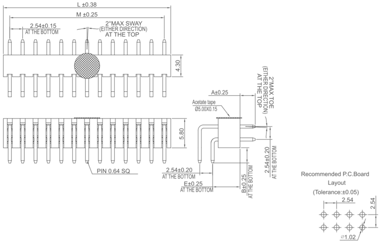 P/H2.54mm 雙排排針 HB210