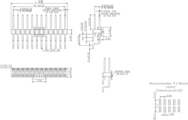 P/H1.0 mm 單排排針 CA101