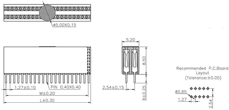 P/H1.27mm 雙排排母 EA213