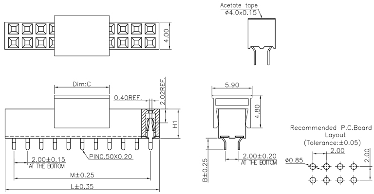 P/H1.0mm 雙排排母 CC211
