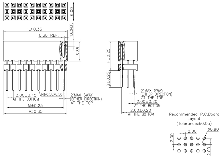P/H2.0mm 三排排母 FA302