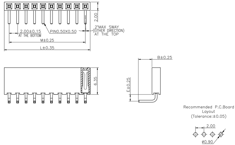 P/H2.0mm單排排母 FB107