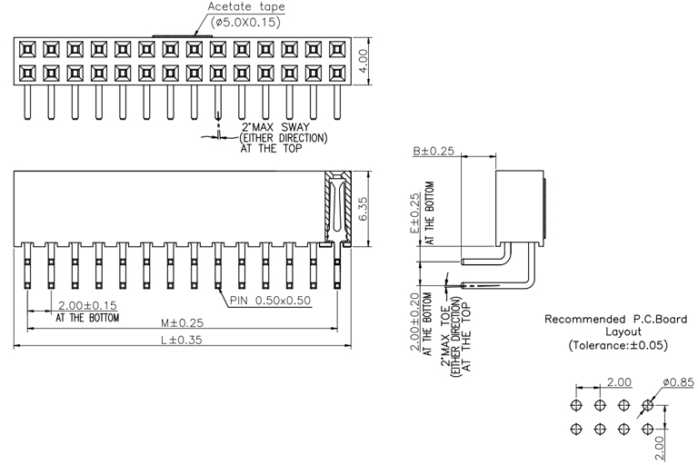 P/H2.0mm 雙排排母 FB207