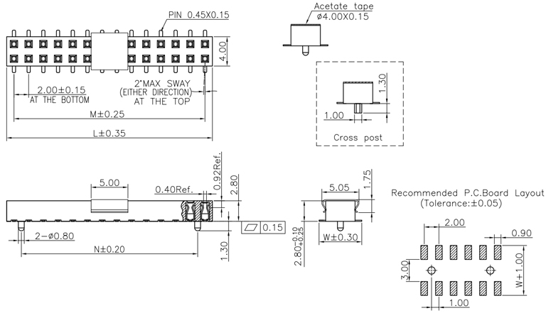 P/H0.8mm 雙排排母 BC222