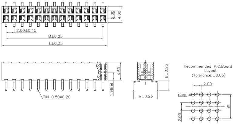 P/H0.8mm 雙排排母 BC222