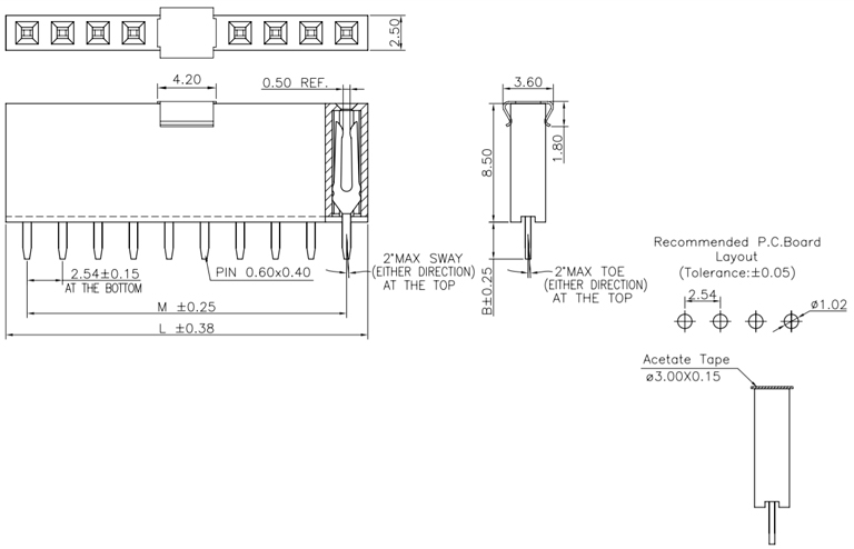 P/H2.54mm 單排排母 HA101