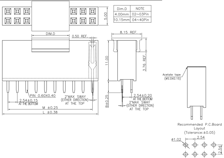 P/H2.54mm 雙排排母 HA203