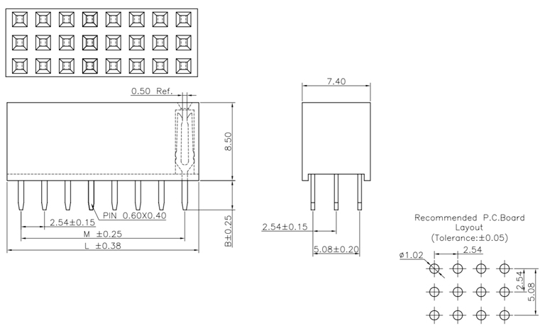 P/H2.54mm三排排母 HA301