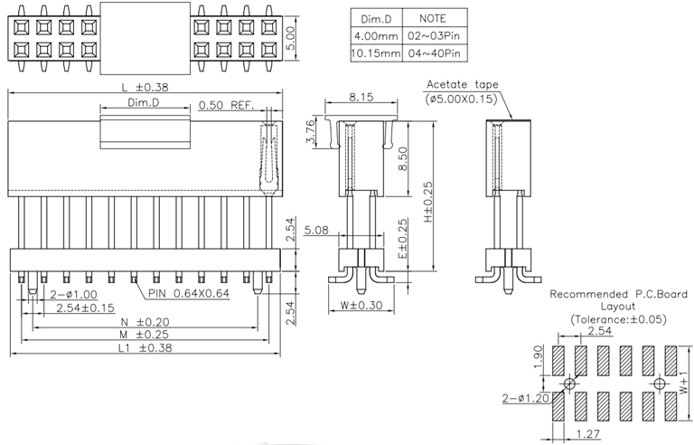 P/H2.54mm 雙排排母 HC204