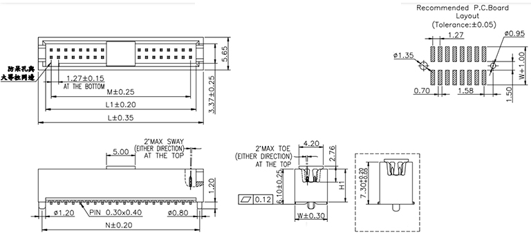 P/H1.27mm Box header EC244(簡牛)