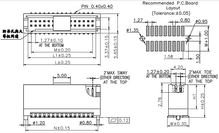 P/H1.27mm Box header EC244(簡(jiǎn)牛)