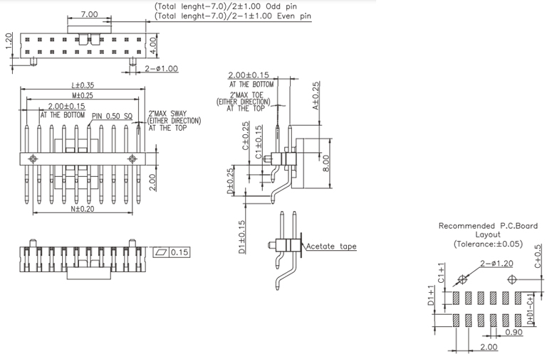 P/H2.0mm 雙排排針 FD201