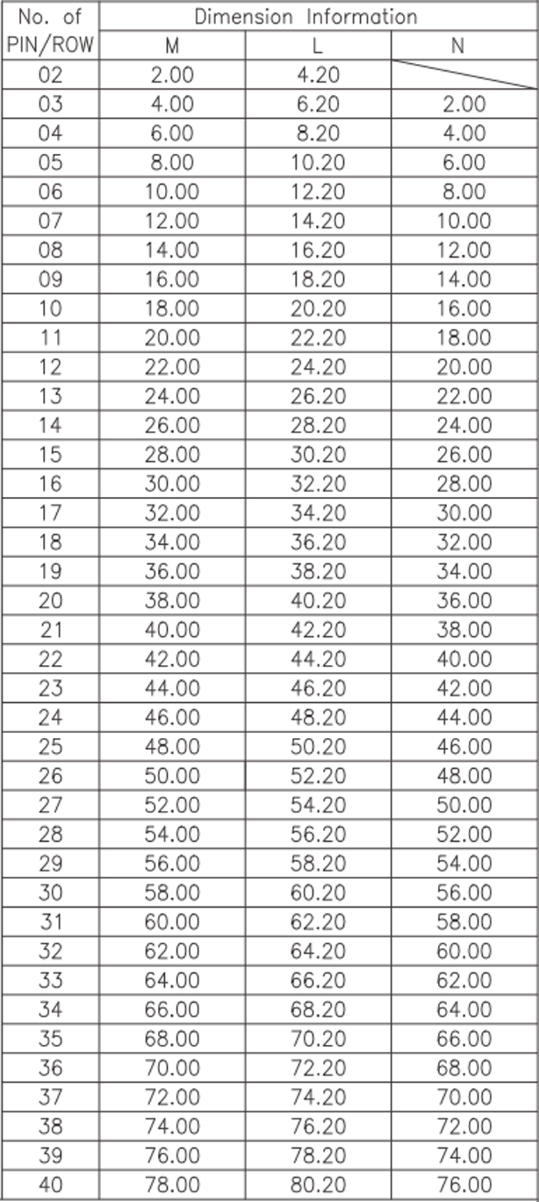 • P/H2.0mm 雙排排針 FD201