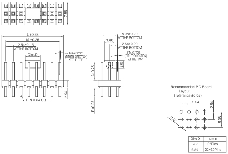 P/H2.54mm 三排排針 HA304