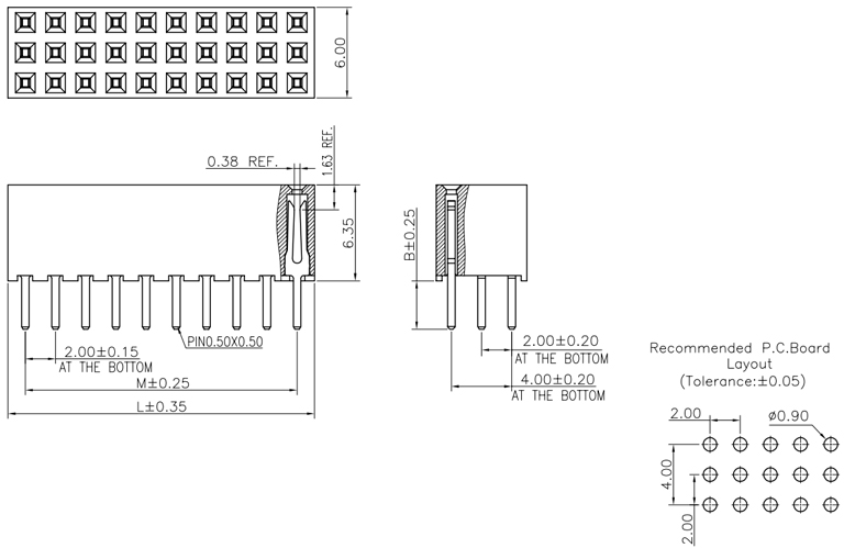 P/H2.0mm 三排排母 FA304