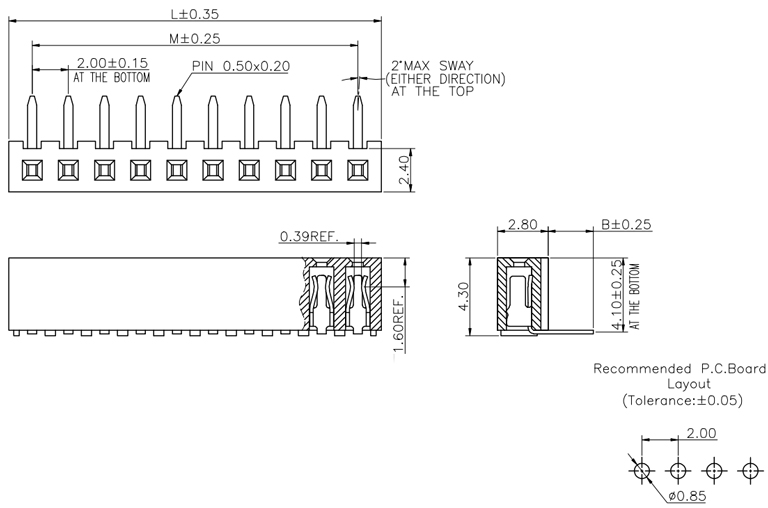 P/H2.0mm單排排母FB102