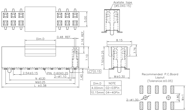 P/H2.54mm 雙排排母 HC221
